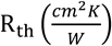 To compare the effectiveness of embedded cooling configurations, it is convenient to normalise a performance metric. Normalising the temperature difference (TJunction-TInlet) between the transistor junction, and the inlet fluid by dividing by the heat flux per area (W/cm2). This gives the thermal resistance of the cooling package per unit area, Rth (cm2K/W) [13].